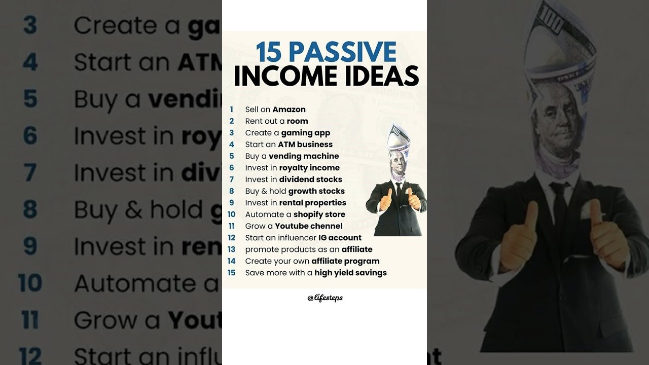 Home Live😎15 Passive Income Ideas: Amazon, rent room, Gaming App, atm business, royalty income🎯 #passive #tip