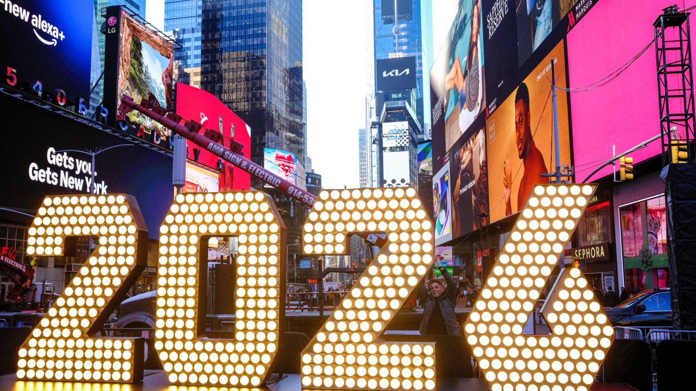 Seven-foot-tall “2026” numerals are displayed after an illumination ceremony in Times Square in New York City on Dec. 18, 2025.