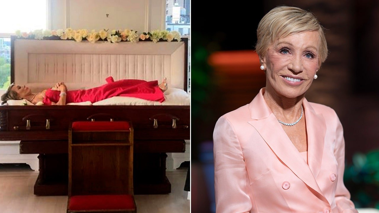 Corcoran shared several photos of the party on her Instagram in 2019 that included fellow “Shark Tank” star Daymond John kissing her on the forehead in her coffin and Robert Herjavec snapping a photo of her.