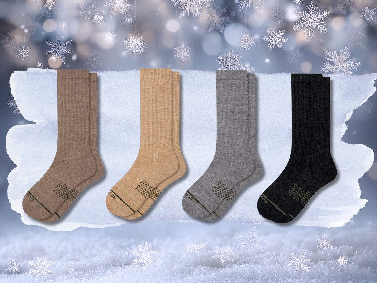 The warm Bombas socks work well with snow boots in the cold. The Bombas Modern Rib Calf Socks are also temperature-regulated with anti-odor protection.