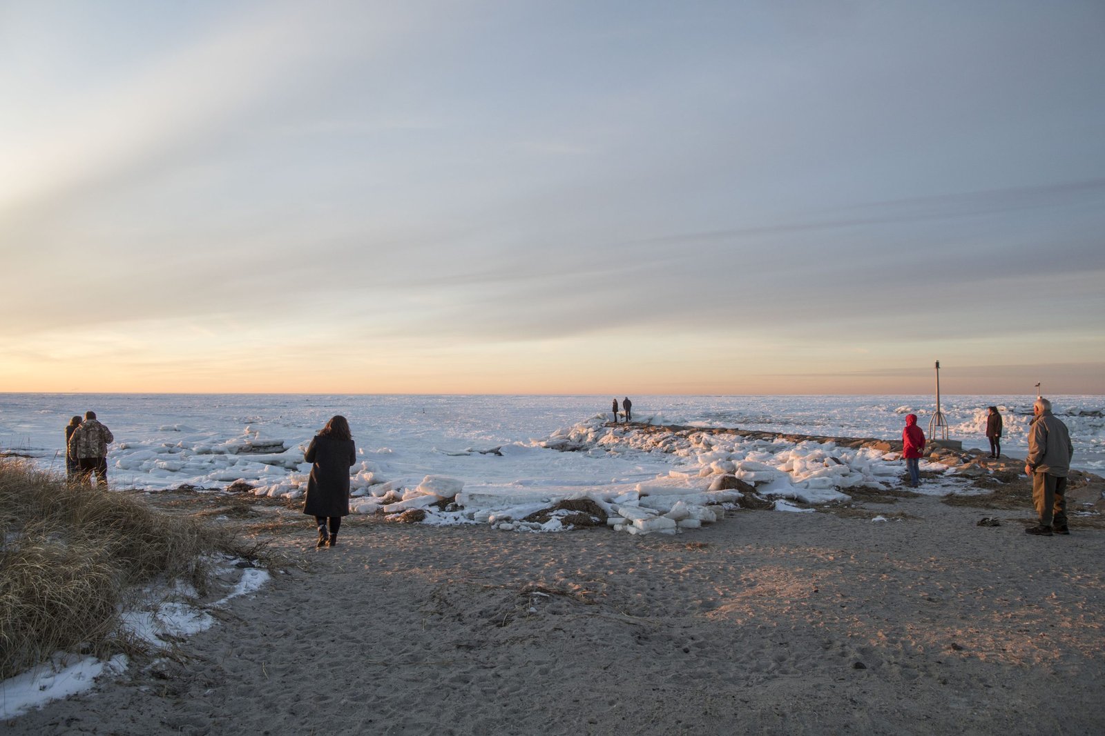 ORLEANS, MA – JANUARY 03: Onlookers gather to photograph and watch the ice that covers Cape Cod Bay on January 3, 2018 in Orleans, Massachusetts.