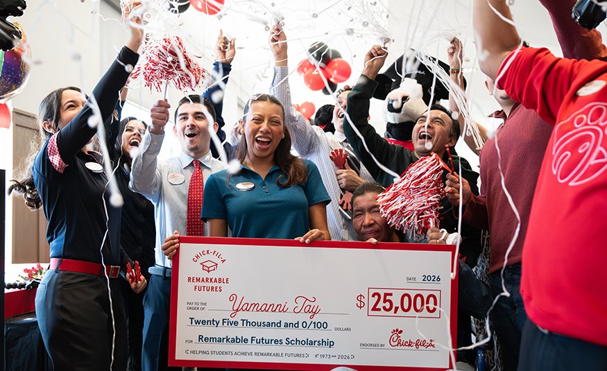 She is among 13 Chick-fil-A employees nationwide to receive a $25,000 scholarship through the chain’s Remarkable Futures Scholarships program.