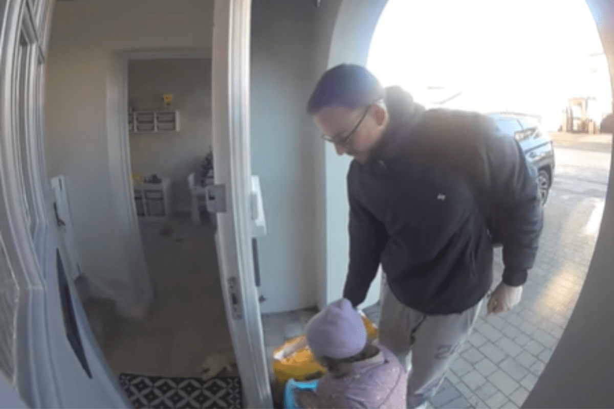 Arlo doorbell footage posted on Sumray’s TikTok (@jordansumray) captures Harriet slipping out behind him, completely unnoticed.