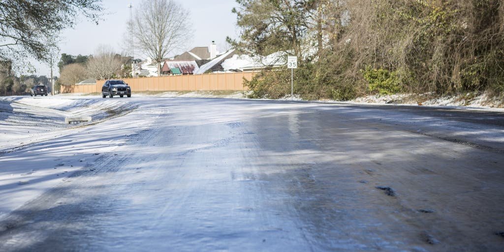 Ice covers Robinson Road and traffic continued to be light Tuesday, Feb. 16, 2021 in Conroe. Temperatures stayed below freezing Tuesday and roads remained icy.