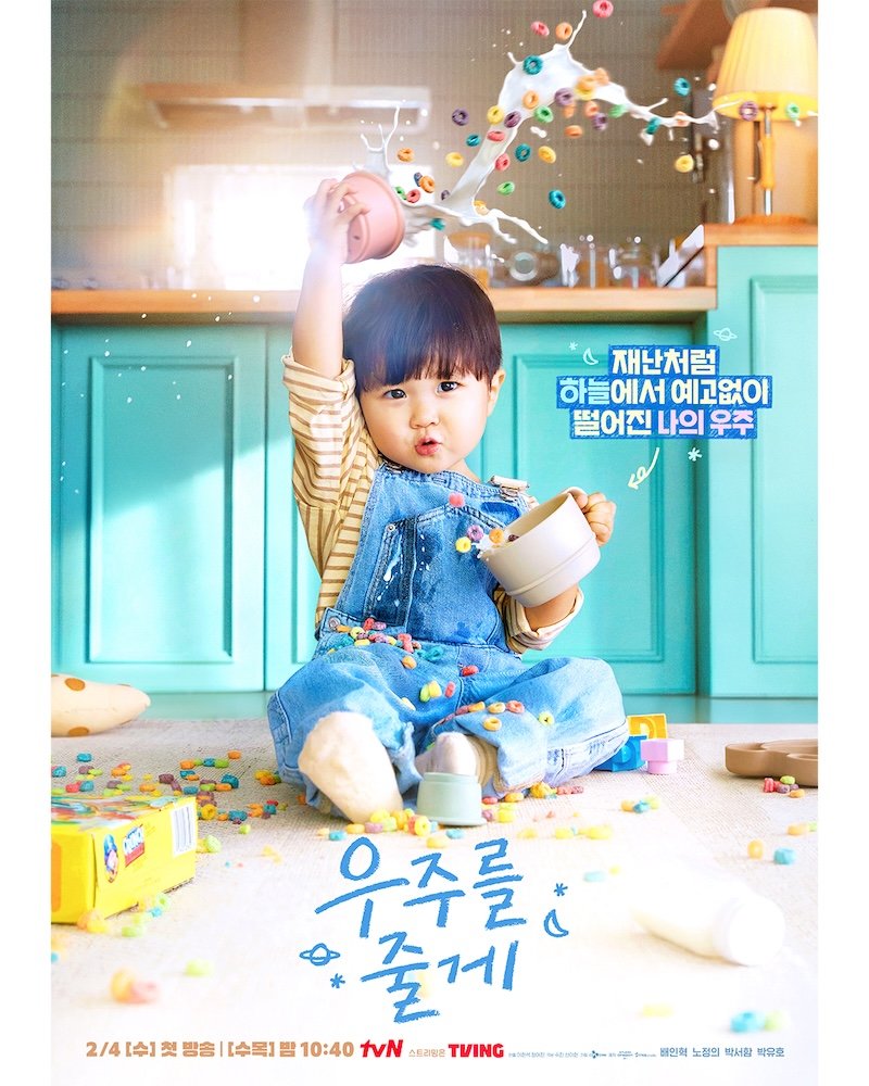 First teaser poster and ep.1 air date set for tvN drama series “Our Universe” starring Bae In-Hyuk and Roh Jeong-Eui. “Our Universe” is now set to premiere February 4, 2026. The drama series will air on Wednesdays and Thursdays at 10:40 PM. The last drama series that aired at that time on tvN was 2023 drama series “Stealer: The Treasure Keeper.” Meanwhile, the caption on the teaser poster states “My universe who fell from the sky without notice like a disaster.” The screenplay will follow a chaotic cohabitation romance between Sun Tae-Hyeong (Bae In-Hyuk) and Woo Hyun-Jin (Roh Jeong-Eui), who are in-laws, as they unexpectedly raise their nephew Woo-Joo together. Woo-Joo’s name also means universe.