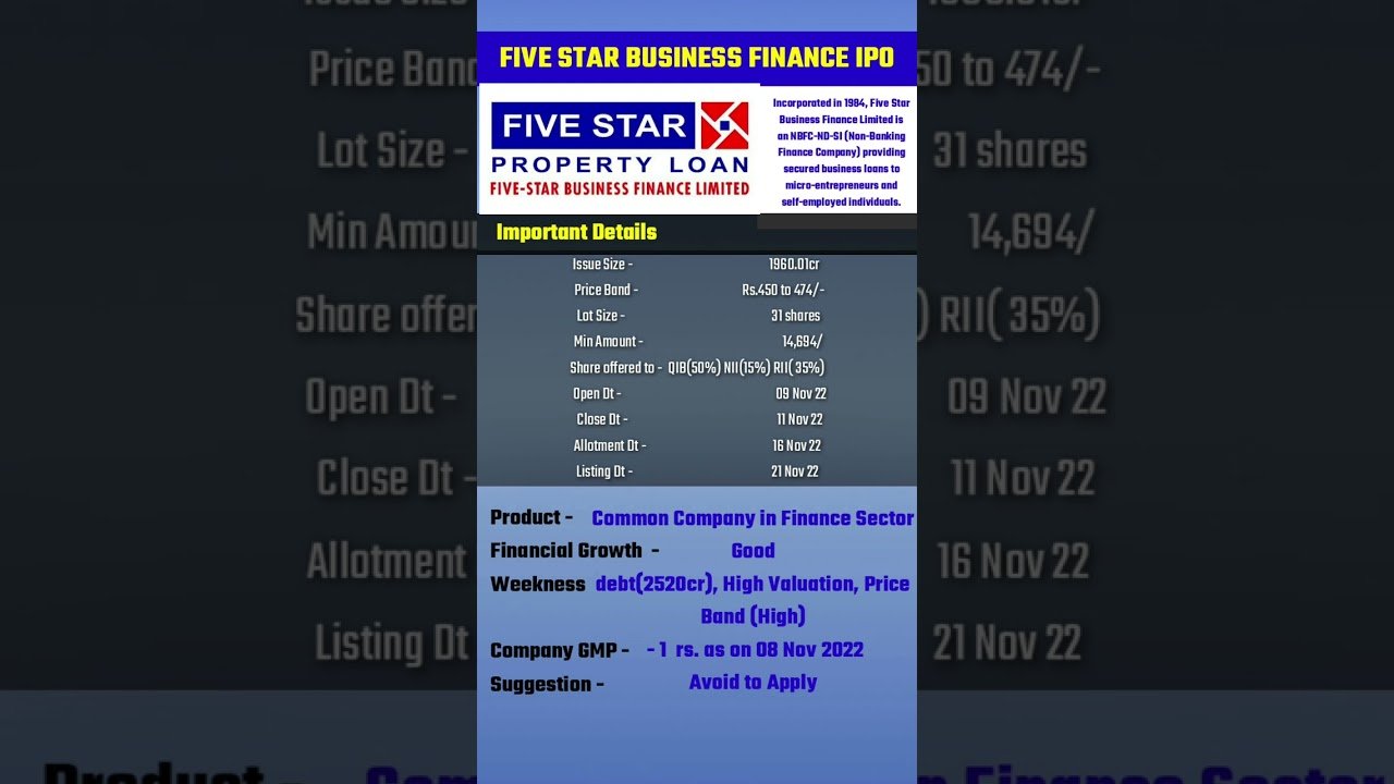 Five Star Business Finance IPO Details #ipo #ipodetails #gmp #latestgmp #gmptoday #shorts #short