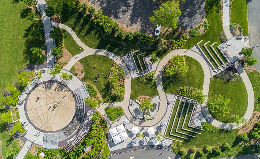 The company highlighted the potential for low-carbon commuting – The Park will cut the ribbon on its first apartments this year – and accessibility along with “responsible operations” at the campus. It highlighted sustainability features including EV charging infrastructure, on-site solar canopies and a bikeshare program.