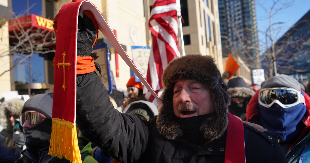 The Reverend Rob Schenck marches in an anti-ICE protest in Minneapolis.Sam Van Pykeren/Mother Jones