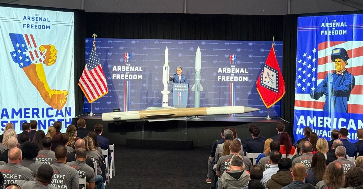 “The technology that you build for our missiles, interceptors, and hypersonic weapons is what allows the War Department to achieve peace through strength,” Hegseth said. “And that mission comes with a non-negotiable mandate from the War Department, straight from the Resolute Desk and President [Donald] Trump: Build more and build faster.”