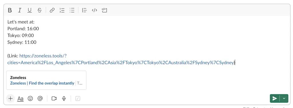 ➜ Zoneless is a free website for figuring out overlapping meeting times across multiple time zones.