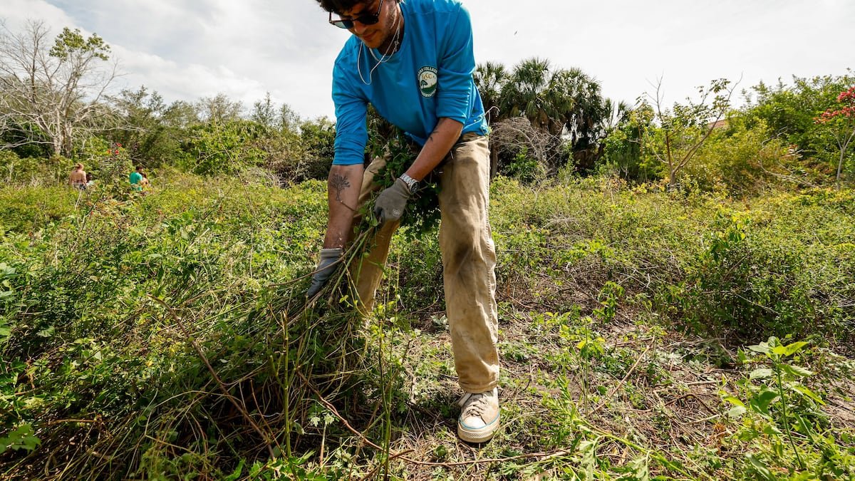 Green weeds with tiny white flowers sprawled over sprinkler heads, and tall bamboo-like stalks hid benches and old bird feeders. The garden, which blends into a palm tree hammock, was damaged during hurricanes Helene and Milton and never completely restored.
