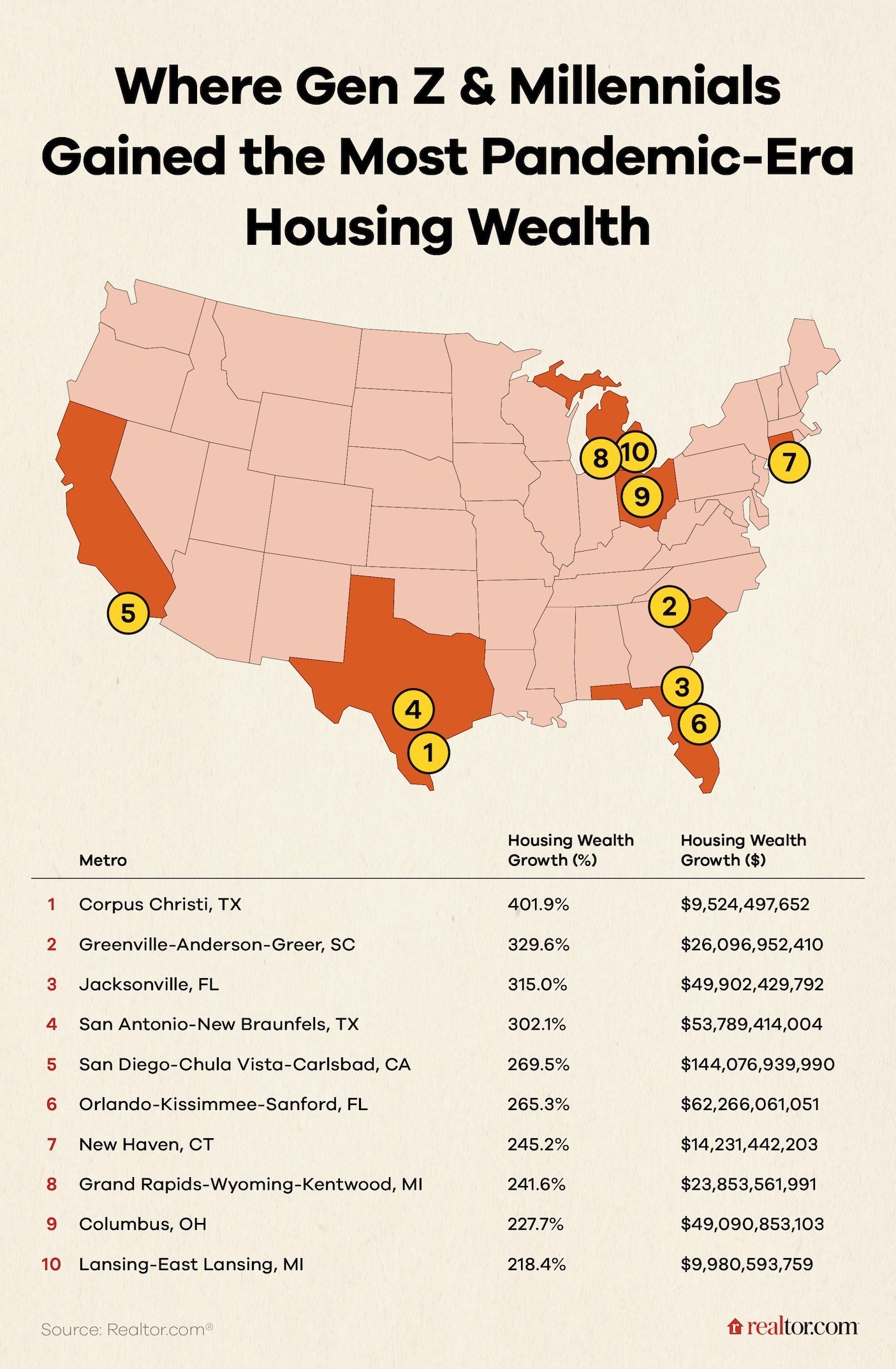 Of the 10 metros where Gen Z and millennial homeowners built the most housing wealth, five rank among the top 25 U.S. metros for Veterans Affairs loans issued per capita, research from Realtor.com shows—underlining what a powerful wealth-building tool VA loans can be.