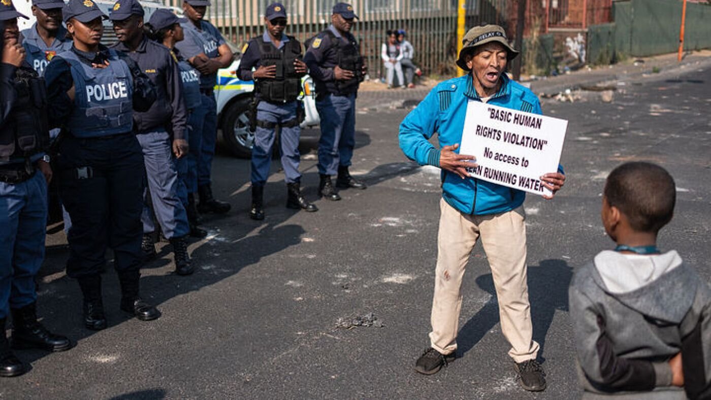 Some Johannesburg residents haven’t had a drop of water for more than three weeks straight: forced to travel to get water from municipal tankers and washing with buckets. Schools and hospitals are also affected.