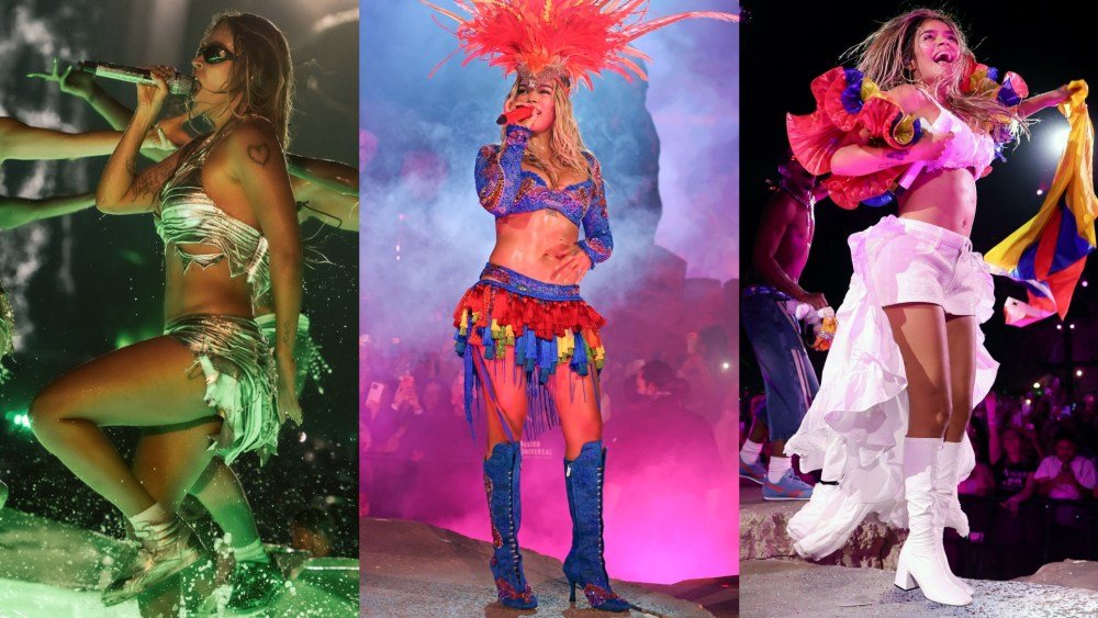 Karol G performing at Coachella wearing custom Reebok sneakers.