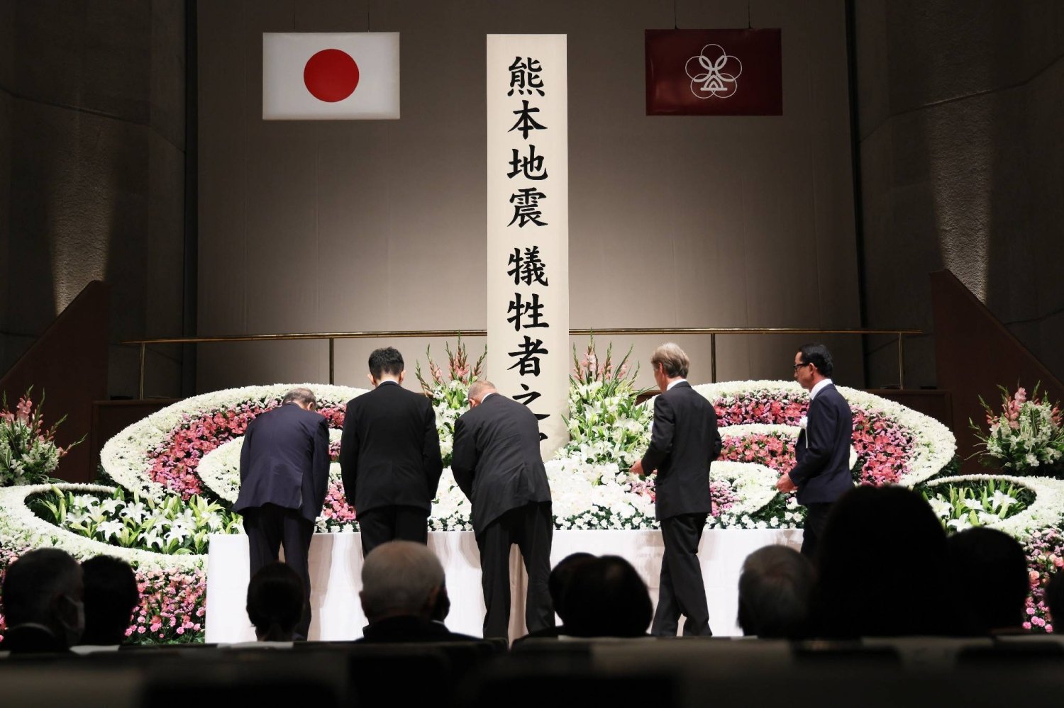 At the ceremony, held by the town of Mashiki in Kumamoto, 184 participants, including bereaved families, observed a minute of silence, offering prayers for the victims.