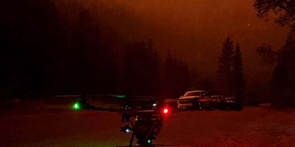 Drone amid wildfire conditions.