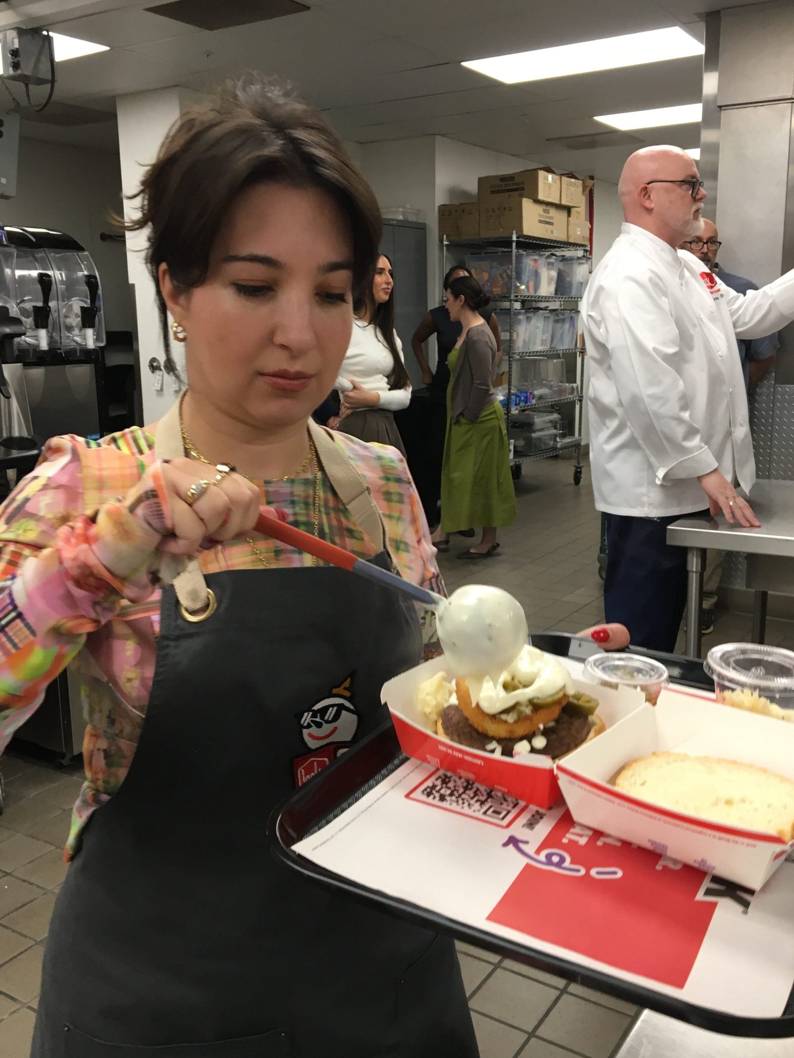 On Jan. 14, the company invited a dozen reporters, bloggers and TikTok videographers to the big kitchen in its corporate headquarters on Kearny Mesa. There they got the lowdown on 2026 promotions and assembled their own “Hot Mess” cheeseburgers, replete with runny cheese sauce, jalapeños and onion rings, all on a sourdough roll. The concoction was introduced in 2013 and will be available in stores this month.