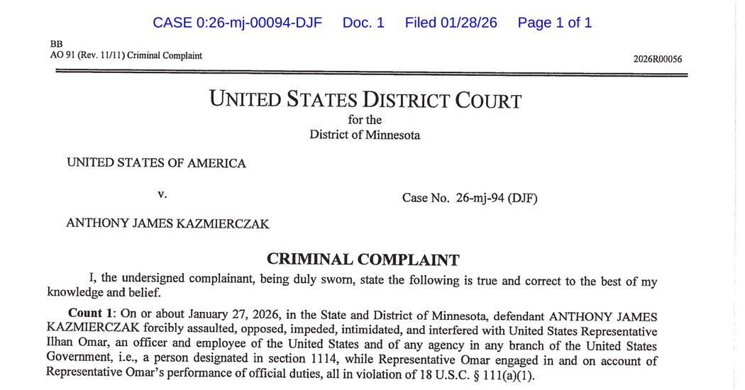 Read the Criminal Complaint Against Anthony Kazmierczak, the Man Who Attacked Rep. Ilhan Omar
