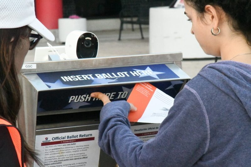 A voter deposits a mail-in ballot at the drop box outside the Chester County Government Center in West Chester, Pennsylvania, on Tuesday, Nov. 5, 2024. (Photo by Peter Hall/Pennsylvania Capital-Star)