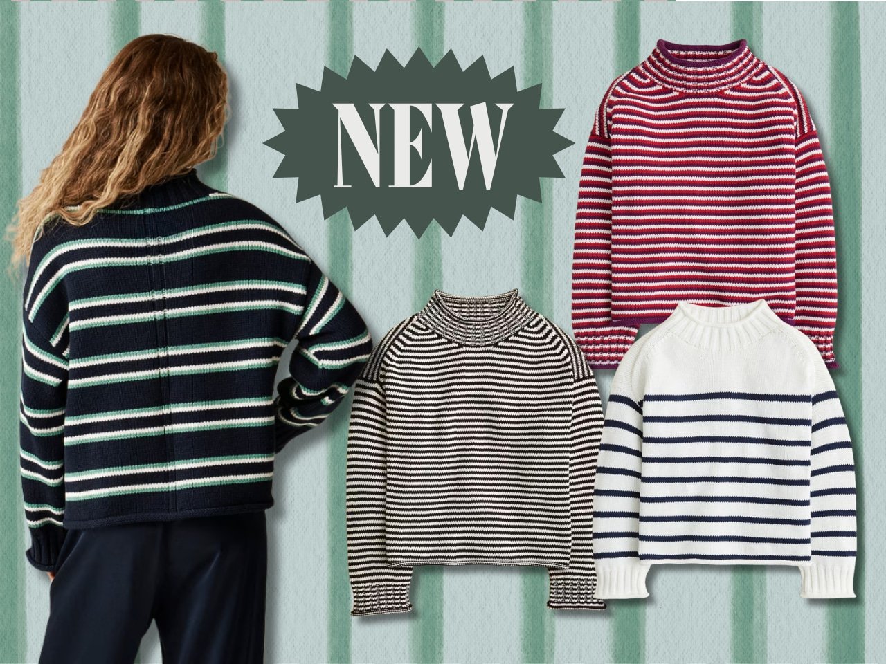 After gaining traction this past fall, the 2025 Rollneck Sweater is back and cuter than ever with stripes galore. Shop ivory ruby raisin, ivory navy, black ivory lace and navy aqua multi before they sell out.