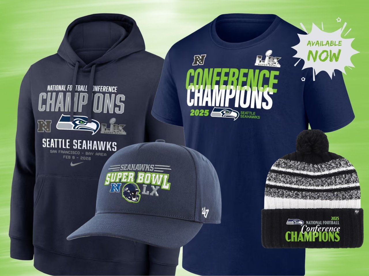 Fans can celebrate the Seahawks’ victory with NFC Championship gear from Fanatics.