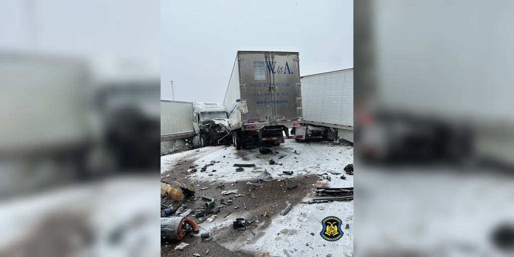 Photos show at least three tractor-trailers involved in the crash.
