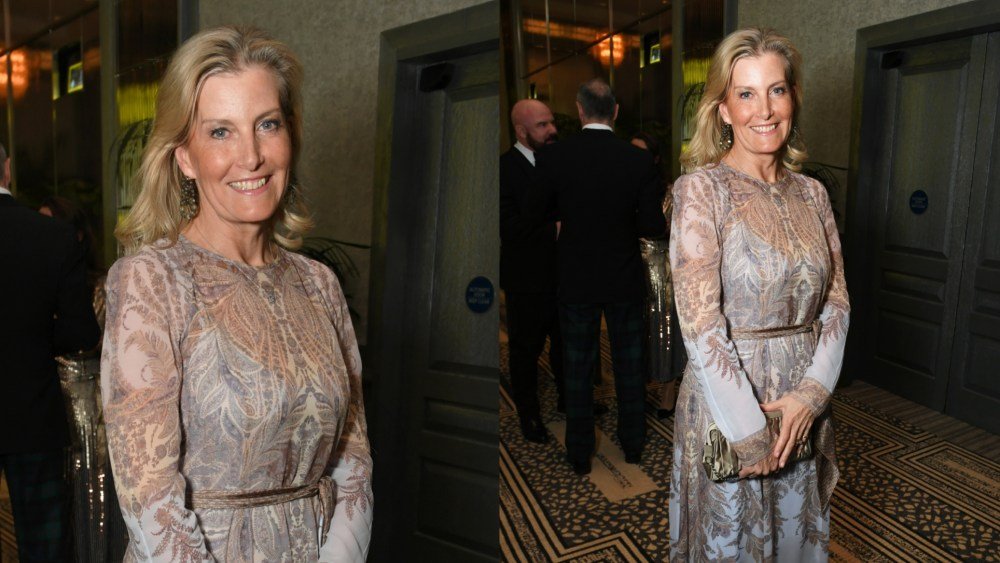Sophie, Duchess of Edinburgh channeled modern elegance in a hypnotic Zimmermann dress for the Jane Goodall Institute U.K.’s Reasons for Hope Gala in London on Monday night.