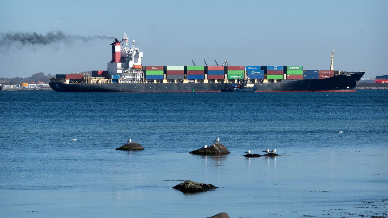 The Iran-flagged container vessel “Nora”, in Kalundborg harbor, Denmark, March 18, 2026. The vessel was detained by Denmark’s maritime authority in February over registration concerns.