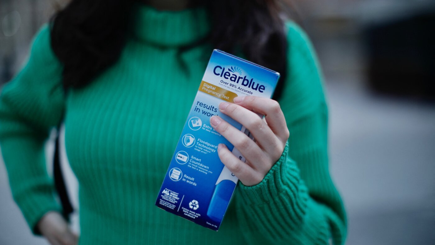 A woman at an abortion-rights protest in New York in 2023 holds a pregnancy test. The U.S. teen pregnancy rate in 2025 was 11.7 births per 1,000 females ages 15 to 19, according to provisional data released by the Centers for Disease Control and Prevention on Thursday.
