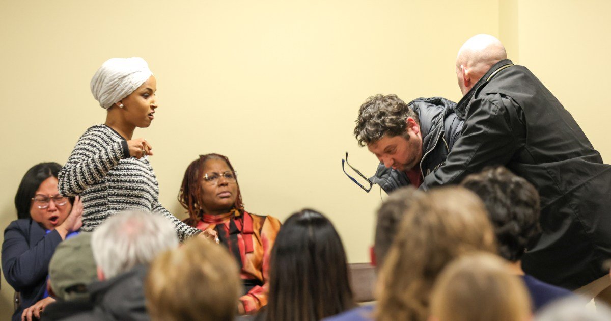 Rep. Ilhan Omar reacting to an attack during a town hall event in Minneapolis on January 27, 2026Steven Garcia/AP