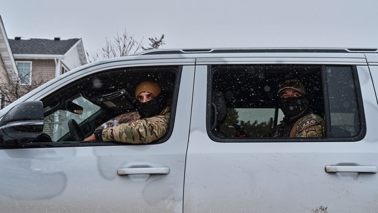 Later, after temporarily parting ways with the S.U.V., the observers met it at a right angle at an intersection. John reversed, backing up and then stopping along the side of the street to avoid the impression that he was seeking an active confrontation. The S.U.V. turned into the oncoming traffic lane so that it now directly blocked us. For a minute, nothing happened. Then the S.U.V. pulled up alongside us, and its passengers rolled down their windows. This time they wore face coverings. In the back seat, one of the men held his phone camera out. (ICE uses facial-recognition technology to identify people.) The driver of the S.U.V. made a pointing gesture at John, then drove on.