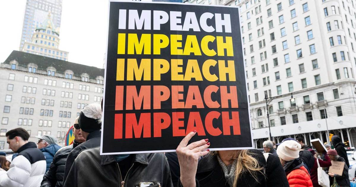 A protester with a sign saying “Impeach” at an anti-Trump demonstration in New York City on January 11. Michael Brochstein/Sipa via AP Images