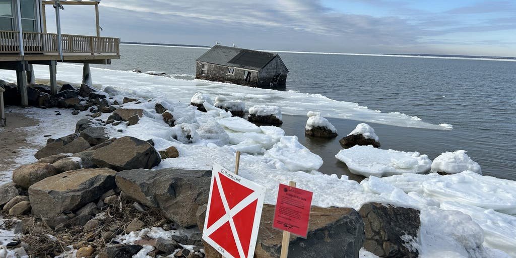 A photo from the town of East Hampton on Thursday showed the house sitting at the edge of the now partially frozen bay.