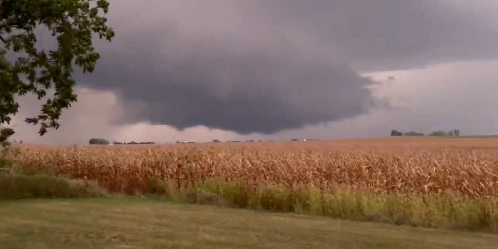 A Level 2 threat covers parts of Kansas, Iowa, Missouri and northern Oklahoma, which could produce damaging wind gusts, hail, and possibly a few tornadoes.