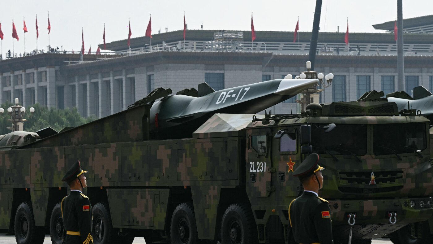 A DF-17 road-mobile medium-range ballistic missile is seen during a military parade in Beijing’s Tiananmen Square on September 3, 2025. China may want to develop new nuclear warheads for its hypersonic weapons.